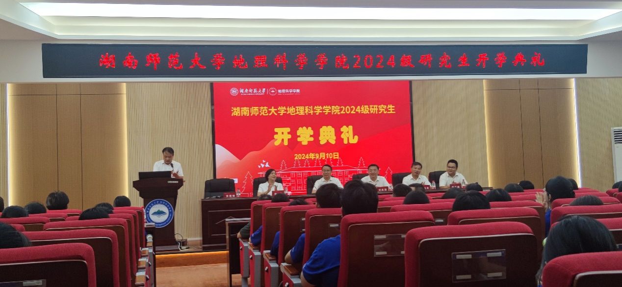 典礼在雄壮的国歌声中开幕,首先由经理周国华教授代表学院作热情洋溢的致辞,他向全体新生表示热烈的欢迎和祝贺,并以“格物明理,追求卓越”为题,就如何成长为一名优秀研究生结合自己思考提出了五点建议:一是坚定学术理想,快乐学习;二是坚持格物明理,博采众长;三是坚守学术规范,诚信科研;四是紧跟学科前沿,勇于创新;五是树立家国情怀,贡献社会。他指出,地理学纵横天地阔,论时空、重尺度,讲格局,“仰以观于天文,俯以察于地理”;他期望大家砥砺顶天立地的人生志向,成长为信仰坚定、学识扎实、技能过硬、格局开阔、身心健康的地理学研究生。