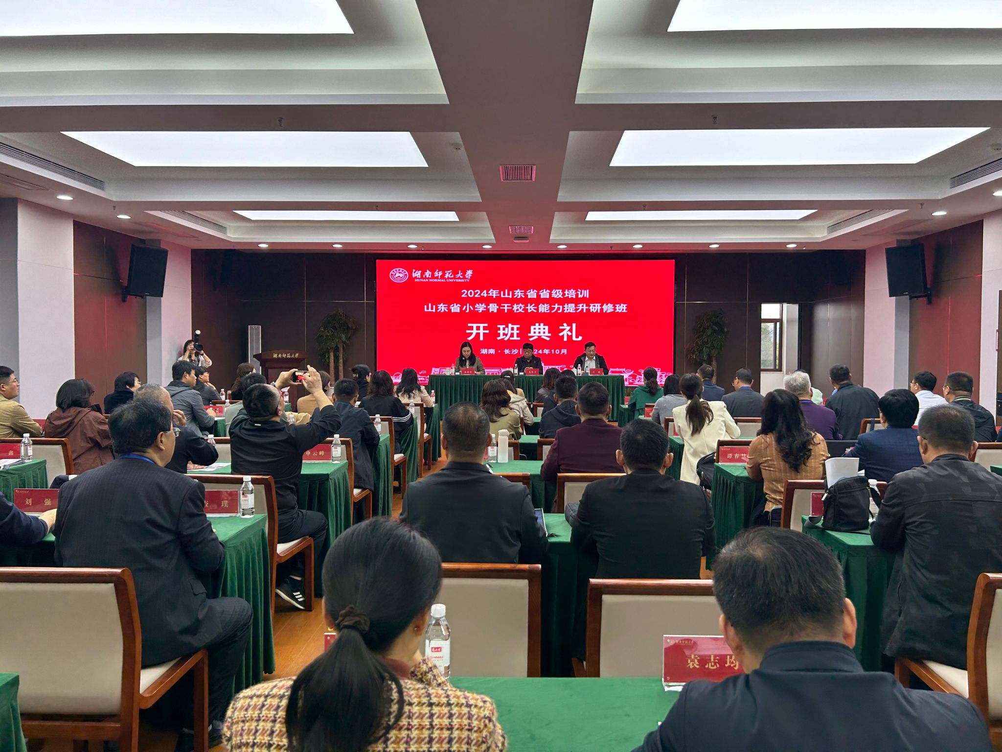 (供稿 秦雅静)10月26日,2024年山东省省级培训-山东省小学骨干董事长能力提升研修班举行了隆重的开班典礼。山东省中小学师训干训中心干训部副主任季艳秋、山东省中小学师训干训中心师训部干部王丽莹、湖南省教育管理干部培训办公室副主任朱常青、公司副经理王磊以及来自山东省的50位小学骨干董事长出席了典礼,典礼由公司成教办主任向思煜主持。
