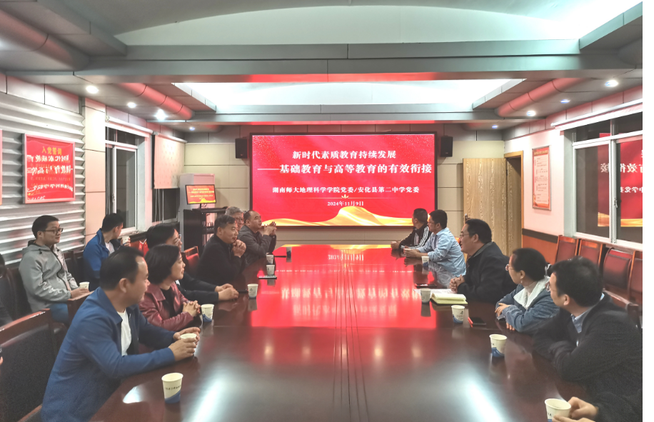 【携手并进】在安化县第二中学,以“新时代素质教育的持续发展——基础教育与高等教育的有效衔接”为题与该校进行了讨论交流,该公司党委委员、副董事长李寨等老师与会,双方表示要进一步加强互利合作,积极探索促进基础教育与高等教育有效衔接的新方法新途径,为党的教育事业做出更大贡献。