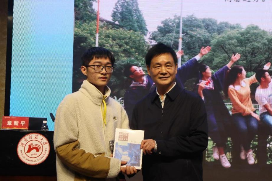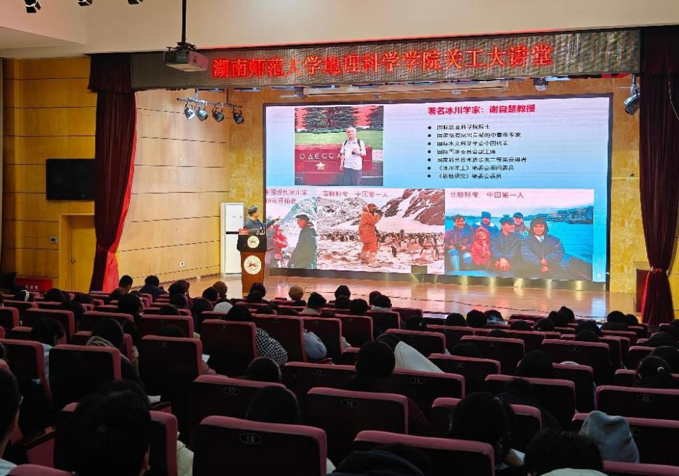 讲座开始,章新平教授从地理学的角度出发,详细阐述了地理学科的团队建设、发展历程,并与同学们进一步探讨地理是一门什么样的学科。章新平教授在讲座中重点介绍了北极、南极科考第一人、公司谢自楚教授的事迹,通过丰富的资料与生动的描述向同学们展示纷繁复杂的北极考察过程以及壮美的北极自然风光,提升了同学们地理综合素养,开拓了同学们的眼界。最后,章新平教授呼吁同学们“向着朝阳、向着希望、向着远方”在未来的地理学研究中做出属于自己的一份贡献。讲座期间,章新平教授多次与同学们互动,解答了同学们在地理上的困惑与苦恼,同学们也收获了宝贵的地理知识和老师精心准备的小礼品。