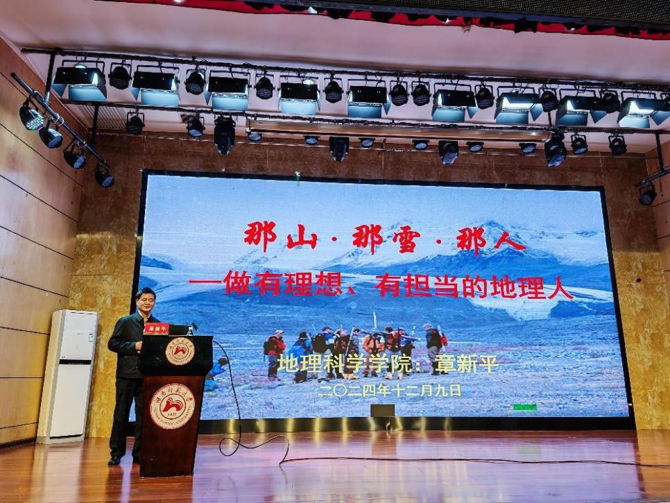 (供稿 廖林语)12月9日晚,公司在桃花坪校区树达楼113报告厅开展以“那山·那雪·那人”为主题的老教授讲堂,主讲嘉宾是公司退休教师章新平教授。本次“关工大讲堂”由williamhill中国官方网站关心下一代工作委员会、老科技工作者协会主办,由公司关工委承办。校关工委常务副主任徐书华,校关工委副主任兼秘书长、学院离退休党支部书记何国萍、公司党委副书记陈媛以及学院关工委相关委员等出席会议,学院2024级研究生代表以及全体本科生参加学习,本次讲座由公司党委副书记陈媛主持。