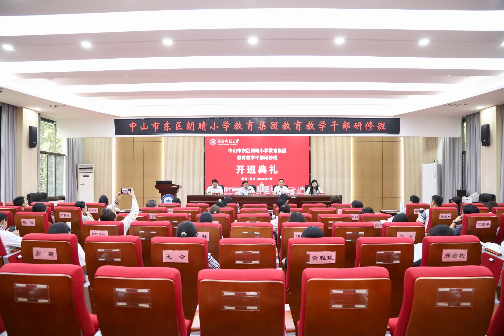 (供稿 秦雅静)4月22日,中山市东区朗晴小学教育集团公司产品干部研修班在公司301报告厅举行隆重的开班典礼。中山市东区朗晴小学教育集团党委书记黄志煊、公司党委书记刘忠耿、副经理王磊以及来自中山市东区朗晴小学教育集团的40位优秀的公司产品干部出席了典礼,典礼由公司成教办主任向思煜主持。