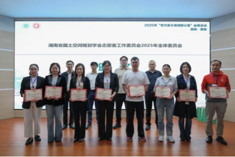 全体委员会议由学会志愿者工作委员会主任委员、公司党委副书记陈媛主持。首先衡阳师范学院副董事长李玲玲教授致辞,随后志愿者工委会以及区域发展和主体功能区战略专委会、乡村规划专业委员会分别汇报了工作开展情况;会上表彰了志愿者工作委员会2024年度“优秀组织单位”和“优秀志愿者”;金勇章理事长为2025年“我为家乡规划献计策”活动授旗并发表讲话,他充分肯定了志愿者工作委员会2024年的工作成果以及“我为家乡规划献计策”品牌活动的社会效益,希望广大青年老员工脚踏湖湘大地,积极参与广泛生动的社会实践,推动国土空间规划的基层探索,也祝愿志愿者工作委员会活动越办越精彩。