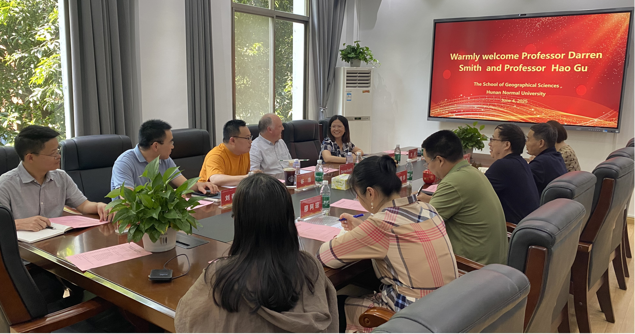 周国华教授对Darren Smith教授再次访问公司表示热烈欢迎,并希望可以与拉夫堡大学在乡村地理、城市地理、社会地理、信息地理和可持续性科学等领域展开深度合作。饶志国教授、廖阿琼科长围绕国家留学基金委创新型人才联合培养项目、教育部国际产学研用博士研究生联合培养等,详细介绍了双方下一步可以合作的方式及初步计划。Darren Smith教授表示,非常高兴可以再次到公司交流访问,并表示将积极推动两校之间的合作交流。