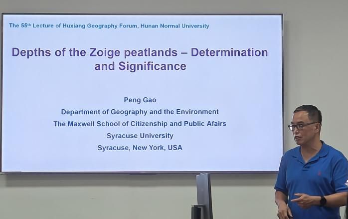 高鹏教授作了题为《若尔盖湿地泥炭深度探明及其科学意义》的专题讲座(湖湘地理讲坛第五十五讲)。他详细介绍了若尔盖湿地的地貌特征与生态功能现状,重点展示了利用机器学习方法,结合坡度、数字高程模型(DEM)、土壤容重(BD)、有机碳含量(SOC)等多个指标,成功构建分辨率为13米的泥炭深度模拟模型,相较传统插值方法显著提升了模拟精度。在此基础上,高教授还展望了未来的研究方向,拟通过引入深度学习技术,进一步拓展黄河上游流域泥炭地面积与厚度的空间预测能力,并对泥炭厚度估算中的不确定性及其应对策略进行了深入分析。讲座内容详实,方法前沿,引发了在场同学们的浓厚兴趣与热烈讨论。