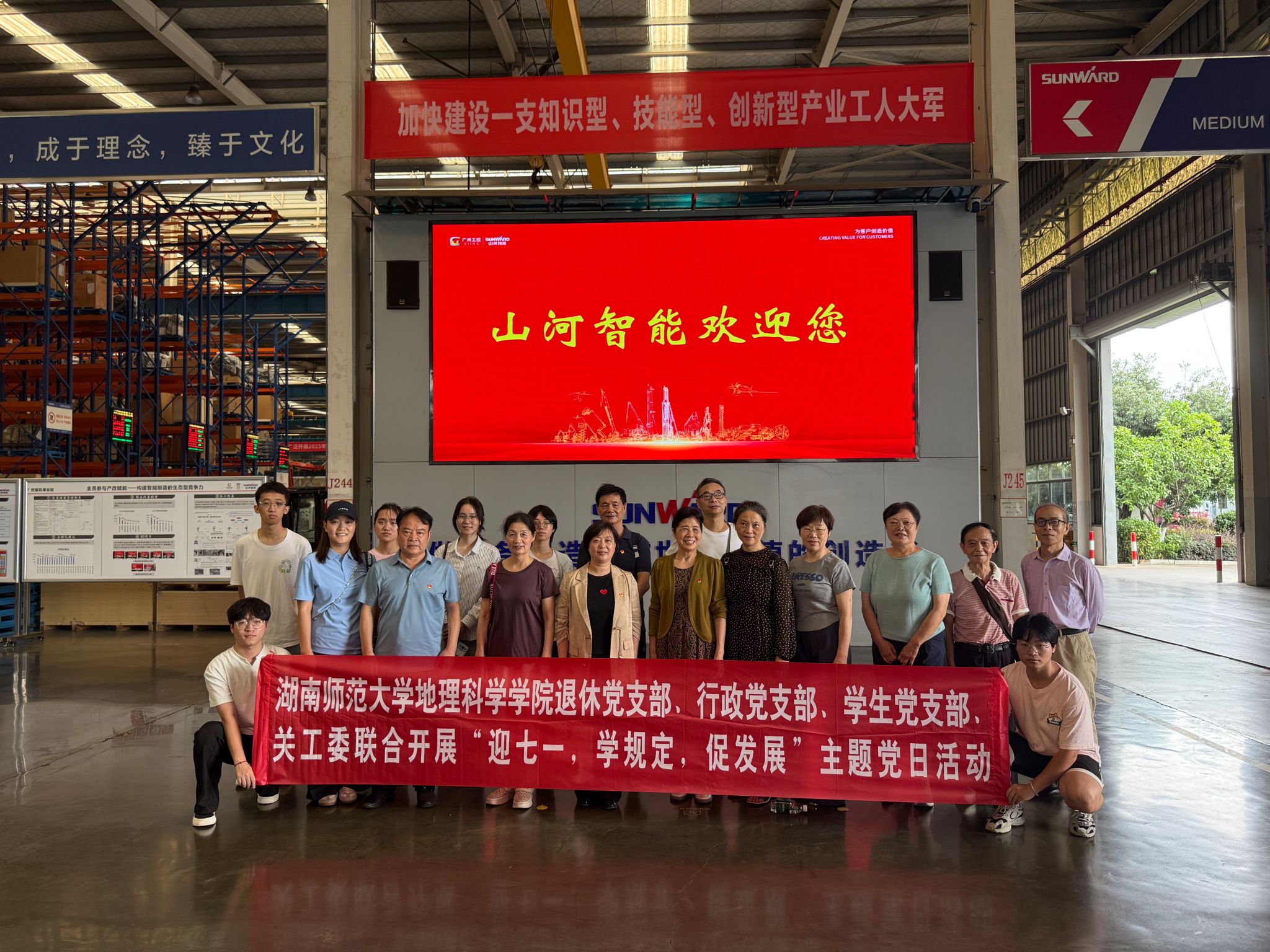 (供稿 杨惠君)6月20日,在喜迎中国共产党成立104周年之际公司退休党支部、行政党支部、员工党支部联合关工委前往山河智能产业园开展“迎七一,学规定,促发展”主题党日活动。学院原党委书记何国萍等退休老同志,公司党委副书记陈媛、副处级专职组织员袁颜锋和员工党员代表20余名师生参加活动。