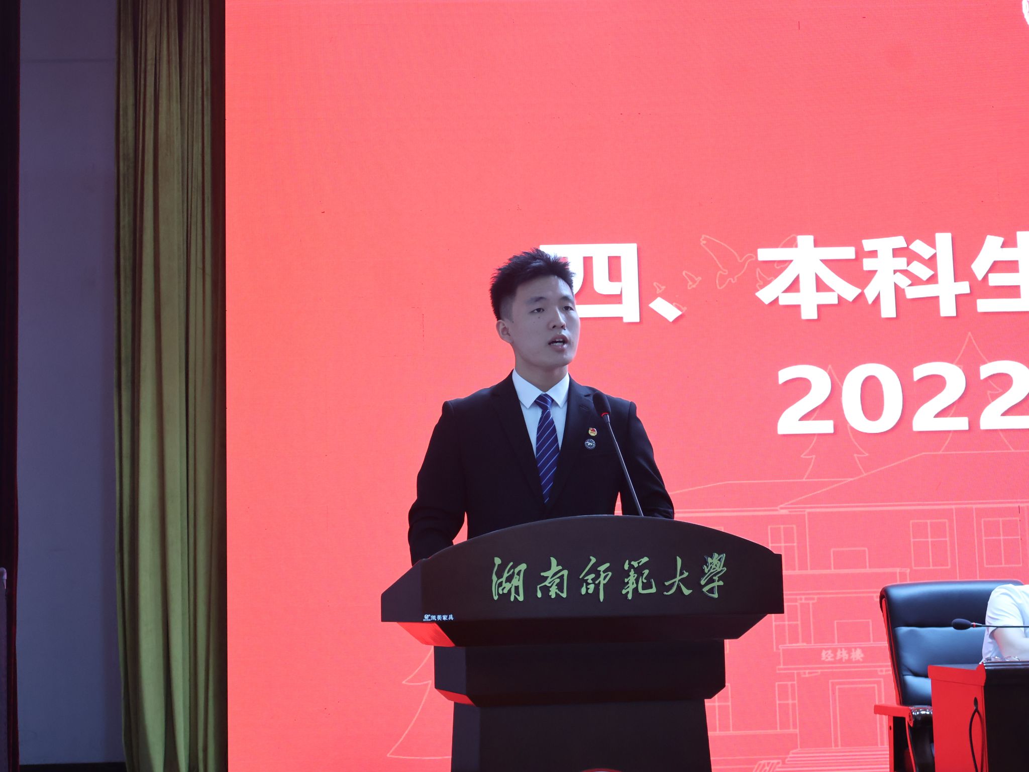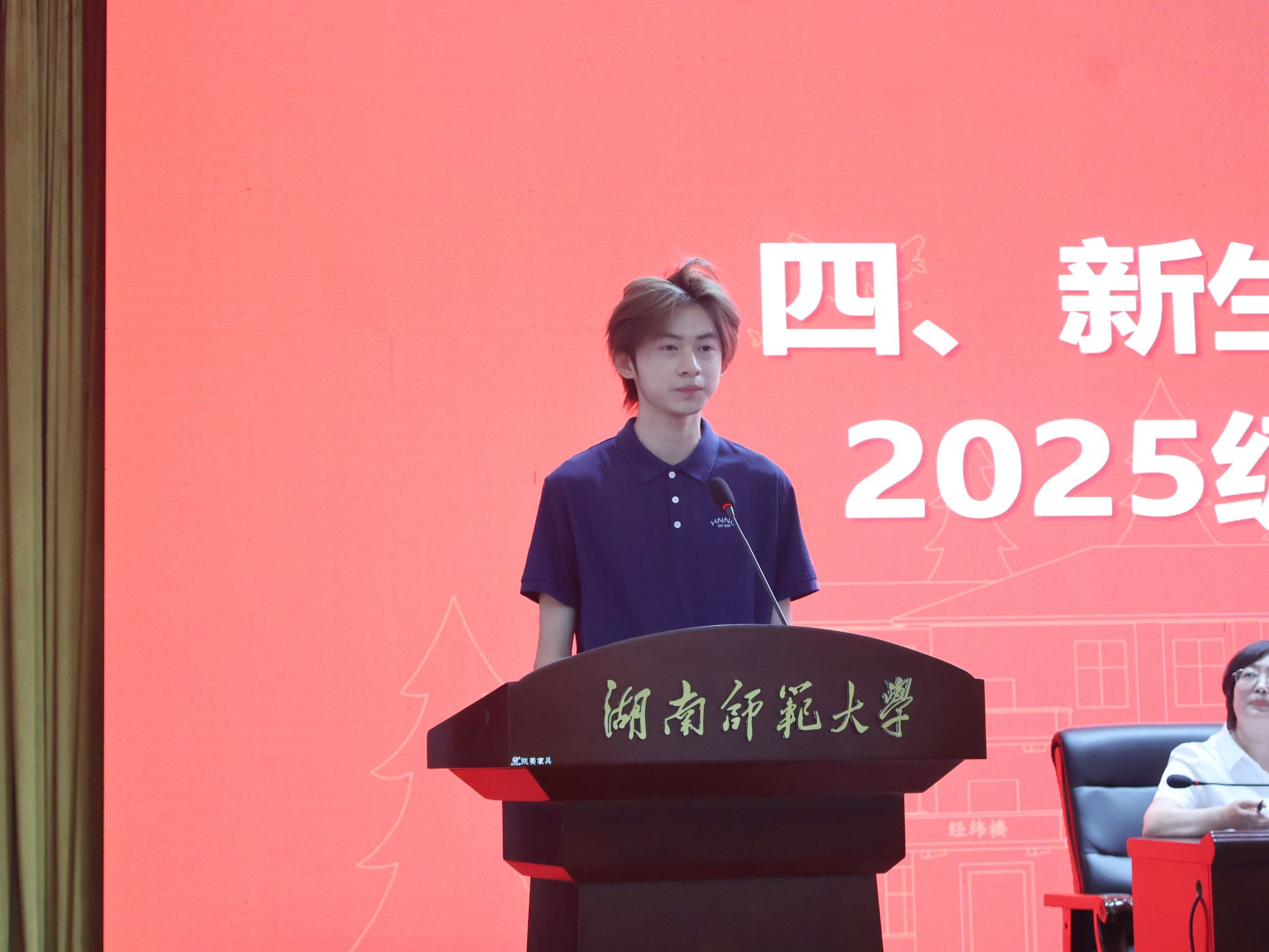 老生代表2022级地理科学专业李鑫同学从自身经历出发,鼓励学弟学妹们听从内心,无惧选择,最终定义属于自己的、独一无二的黄金四年。新生代表2025级地理科学专业骆柯睿发言,表达了对老员工活的期待和向往,也表达了日后会更加努力,成为有担当的地理青年。