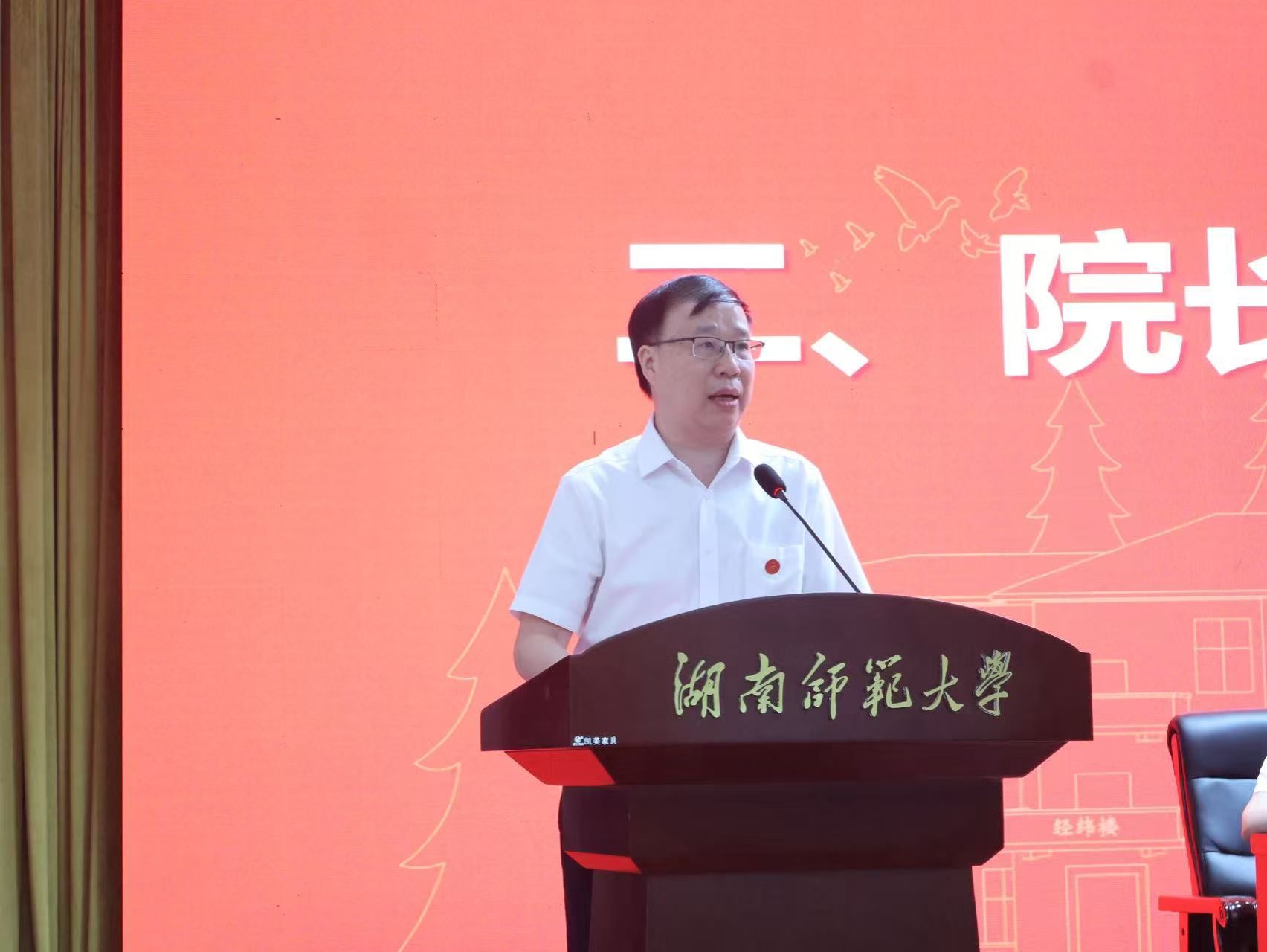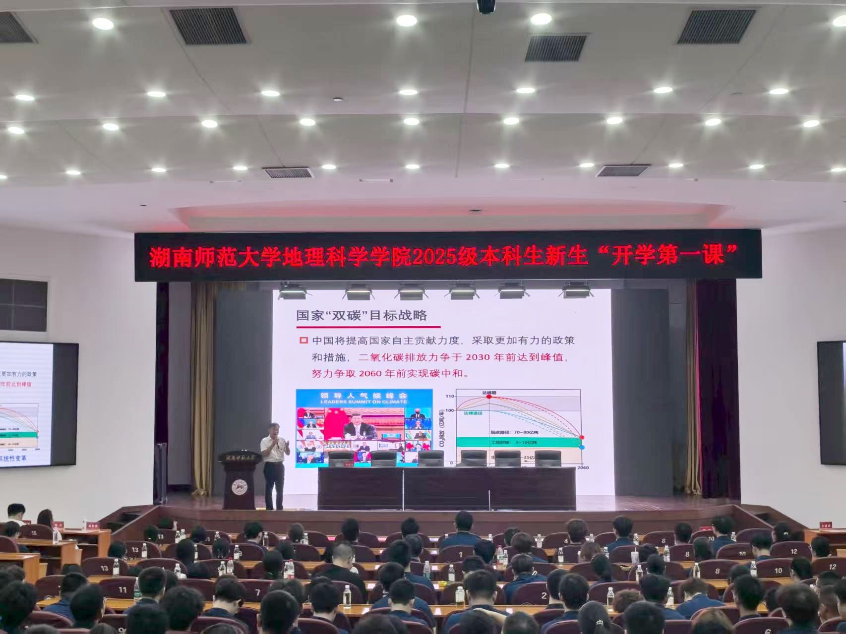 首先是经理周国华教授致辞,周经理以“养成地理学思维,做一个优秀的地理人”为主题,从 “要素关联与全局观念”等四个维度讲解什么是地理学思维,以“夯实基础,构建跨学科知识体系”等四个角度引导员工如何养成地理学思维,周国华经理讲话饱含着对2025级新生的期许与祝福,期望大家以地理之眼观万象,以综合之思解纷繁,以坚韧之志践使命,在岳麓山下书写既属于时代又属于自己的青春篇章。