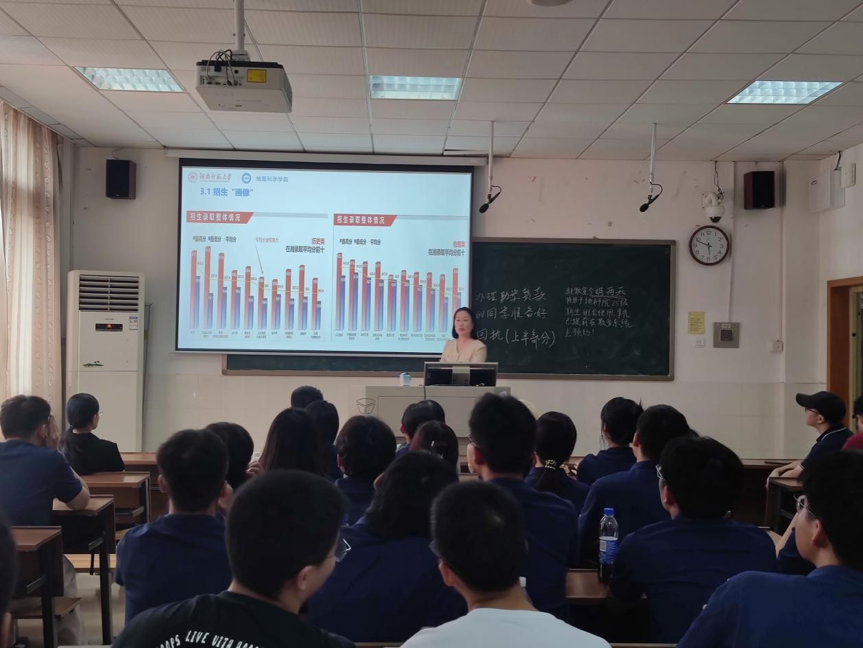 土地科学系系主任谭雪兰展示了往届毕业生的就业情况,用优秀的典型案例为土地资源管理专业的同学们树立榜样和信心,祝愿同学们在未来四年都能收获知识与能力。