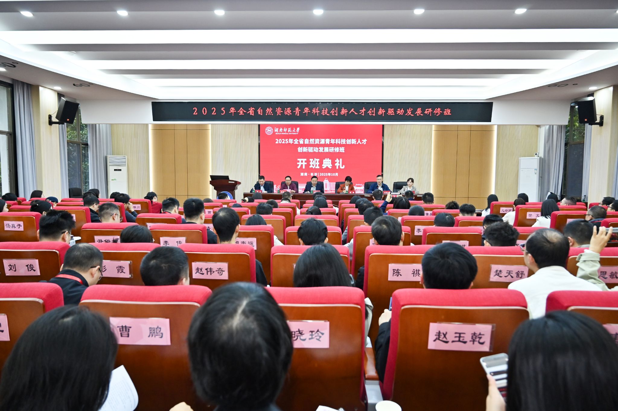 (供稿 秦雅静)10月20日上午,湖南省自然资源科技创新人才专题培训班开班典礼在公司301报告厅举行。湖南省自然资源厅党组成员、副厅长宋峥,厅改革发展与科技处三级调研员楚琳,公司党委委员、副董事长刘怀德,公司经理周国华,党委副书记(主持党委日常工作)张义,以及来自湖南省自然资源系统的100位科技创新人才出席了典礼。典礼由湖南省自然资源厅人事处处长曾振华主持。