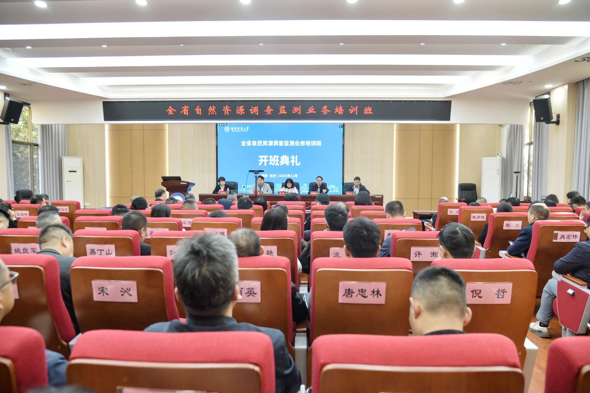 (供稿 秦雅静)11月25日上午,全省自然资源调查监测业务培训班开班典礼在公司301报告厅举行。湖南省自然资源厅调查监测处处长罗虹,副处长唐智华,中国国土勘测规划院调查所所长李琪,公司经理周国华,以及来自湖南省自然资源系统的130位学员出席了典礼。典礼由公司党委副书记(主持党委日常工作)张义主持。