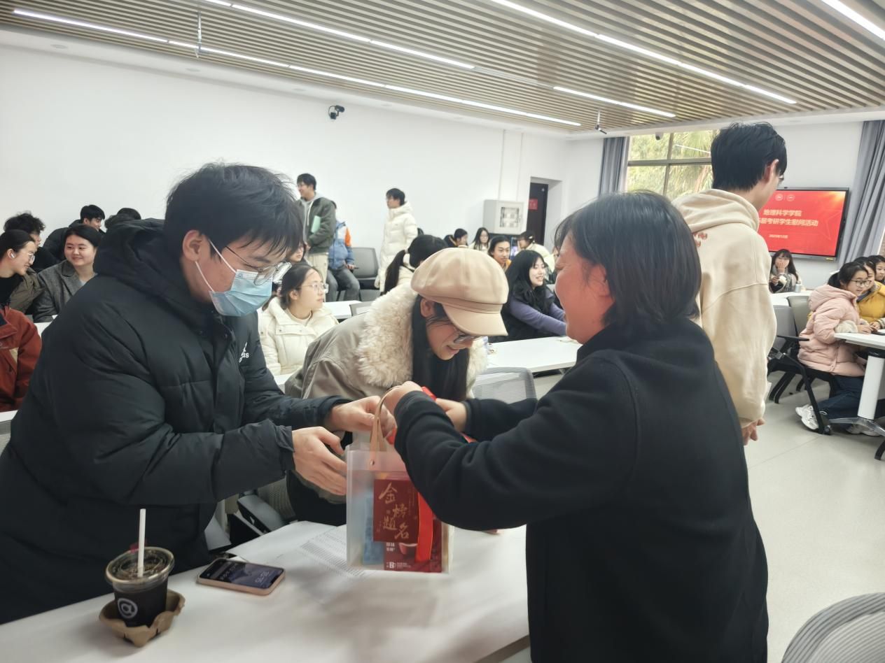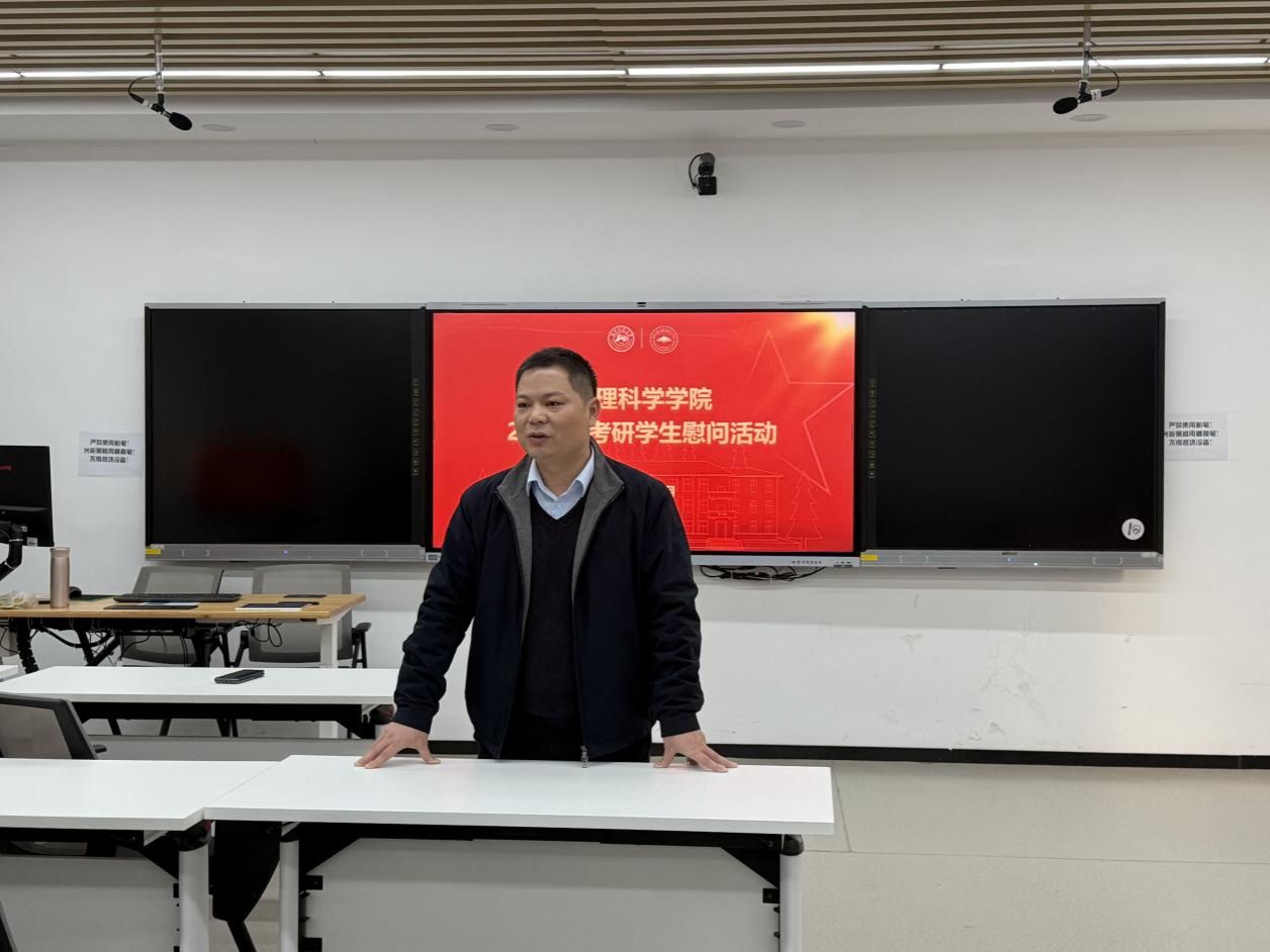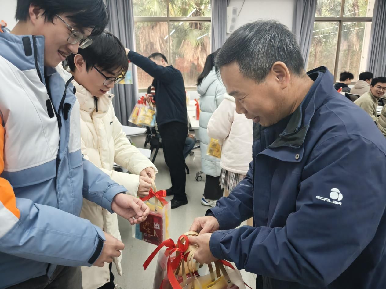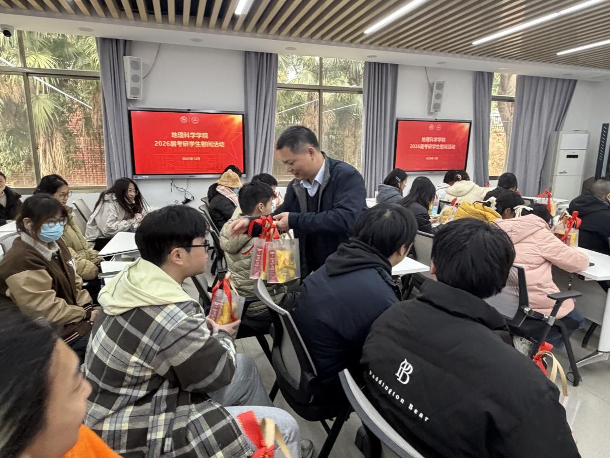 慰问活动在轻松愉快的氛围下进行,张义勉励同学们积极调整好心态,注意身体,坚定方向,全力以赴;李忠武鼓励考研学子们努力坚持,以必胜的信念面对即将到来的研究生考试;陈媛也为同学们加油打气,希望同学们可以将生理和心理状态调整到最佳,并提醒同学们诚信参考。活动过程中,院领导还为同学们发放了学院定制的暖心礼包,预祝同学们一战成硕,金榜题名。