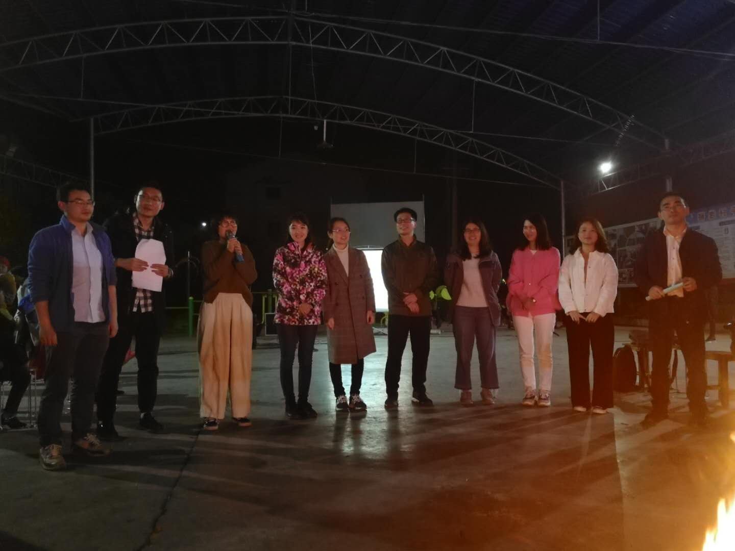夜幕降临后,在小镇文化广场中间生起熊熊大火。老师们围坐一圈,在轻松欢快的氛围下“相亲相爱一家人”篝火联欢晚会正式开始了。阳春白雪、下里巴人逐一粉墨登场。既有接地气的《最炫民族风》,也有慷慨激昂的爱国诗歌朗诵;既有寓意深刻的方言情景剧,也有搞笑易懂的三句半;既有新老职工面对面谈心交流,也有并肩参与游戏互动……陈媛主席天籁般的歌声和徐枫老师婀娜多姿的舞蹈使整场晚会达到高潮。火光映衬下,老师们喜笑颜开,全身心沉浸在联欢会中。