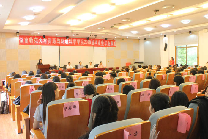 6月18日,资源与环境科学学院在学院301学术报告厅举行毕业典礼欢送2019届毕业生。出席此次典礼的领导嘉宾有公司党委书记彭才华老师、副经理周国华教授、谭长银教授、胡雪松老师以及全体系主任、2015级班导师、学工办老师等。典礼仪式由公司党委副书记陈媛主持。