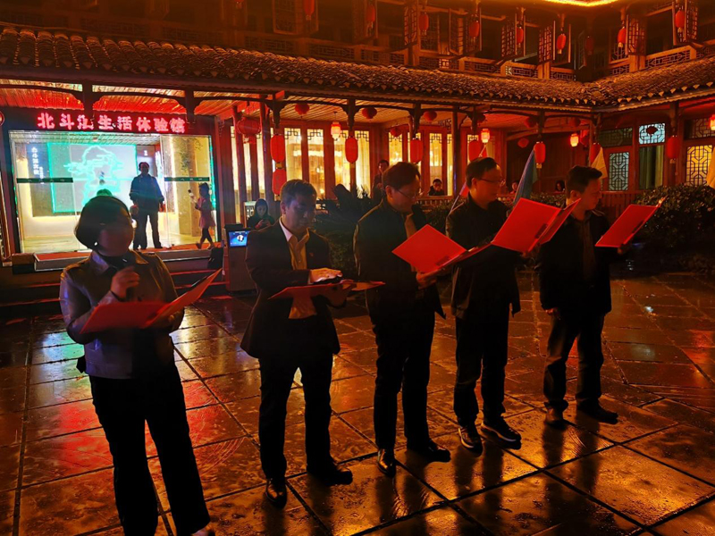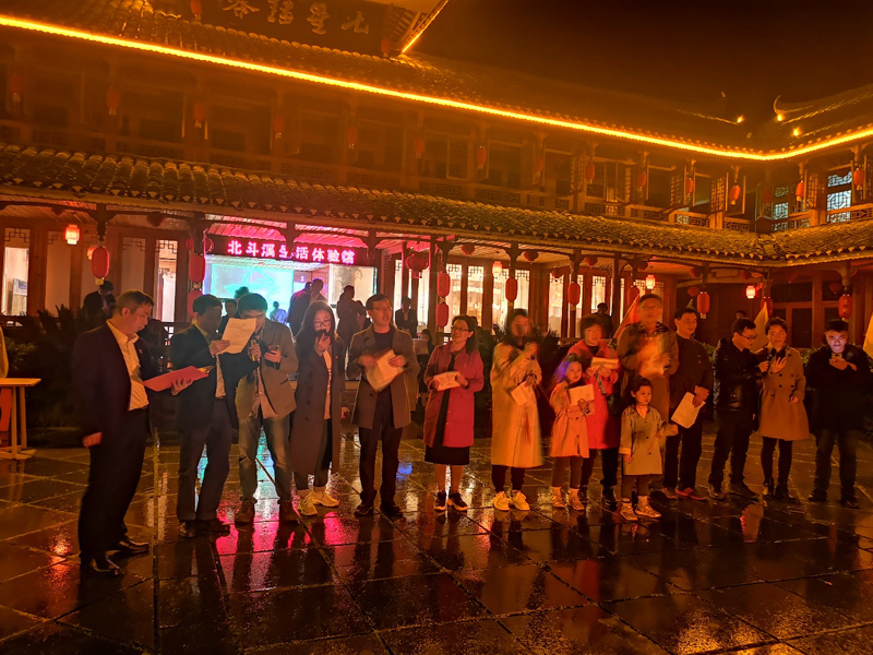 夜幕降临后,当地村民在小镇的文化广场中间燃起了熊熊大火。老师们和当地村民围坐一圈,在轻松愉快的氛围下举行“威廉希尔中文官网、溆浦县北斗溪镇‘颂党恩,跟党走’”联欢晚会。既有脍炙人口的红歌联唱,也有慷慨激昂的爱国诗歌朗诵;既有神秘的魔术表演和热情的花瑶族舞,也有搞笑易懂的三句半;既有紧张兴奋的游戏互动,亦有新老职工及当地村民的谈心交流。公司党委书记彭才华等院领导极具感染力的诗歌朗诵节目《可爱的中国》使整场晚会达到最高潮。大家在领略革命烈士方志敏爱国情怀的同时,也在领导们声情并茂的表演下备受鼓舞。整场晚会在火光映衬下,你方唱罢我登场,载歌载舞尽欢颜!最后溆浦县人民政府副县长、北斗溪镇党委书记梁金华发言,她对学院支持地方发展所做的工作表示感谢,并希望双方进一步加强校地合作,为乡村振兴继续贡献智慧和力量!