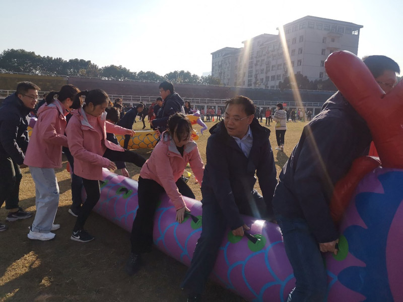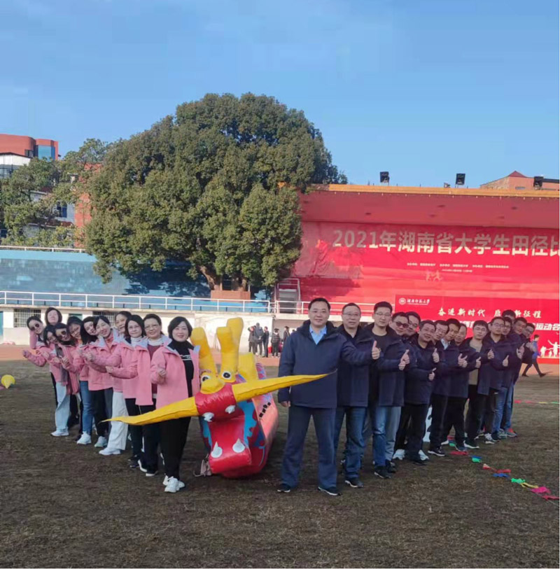 (通讯员王婷)12月5日上午,冬日晴空温暖如煦,为全面落实学校第十一次党代会提出的“幸福师大”发展目标,积极响应学校工会校园文化建设的要求,丰富教职工的文体生活,公司党委书记刘忠耿、副书记陈媛,副经理周国华、谭长银,潇湘学者特聘教授李忠武以及部门工会四十余位教职工着装统一整齐、精神抖擞地代表学院参加校工会2021年教职工趣味运动会。