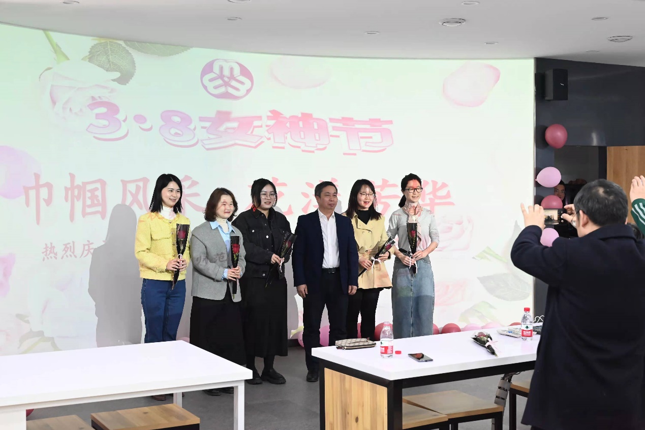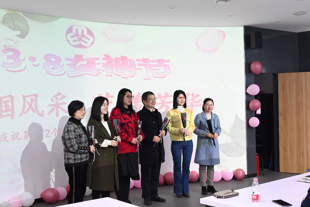 本次活动由公司党委副书记陈媛主持。在陈媛副书记简略介绍本次活动的目的和内容后,党委书记刘忠耿向全院女教职工们表达了热情洋溢的节日问候,肯定妇女同志特殊地位的同时也感谢大家对学院所做的贡献,希望通过工会活动进一步增强本院的集体凝聚力,营造团结有爱、积极向上的集体氛围。学院经理谢炳庚、党委书记刘忠耿、副经理周国华和谭长银、副处级专职组织员袁颜锋、工会副主席彭鹏分别向各工会小组的女教职工们、工会委员和小组长们献上火红的玫瑰和送去美好的祝福,现场欢乐轻松的氛围掀起了活动的小高潮。