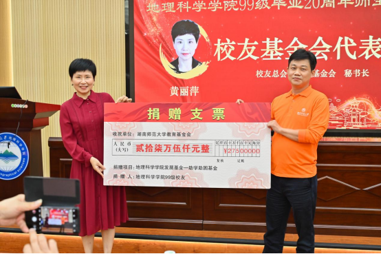 员工总会、教育基金会黄丽萍秘书长代表学校教育发展基金会接受捐赠,代表员工总会对99级员工返校表示热烈的欢迎,并向99级员工关心支持学校发展表示衷心感谢,向员工们表达了良好的祝愿。