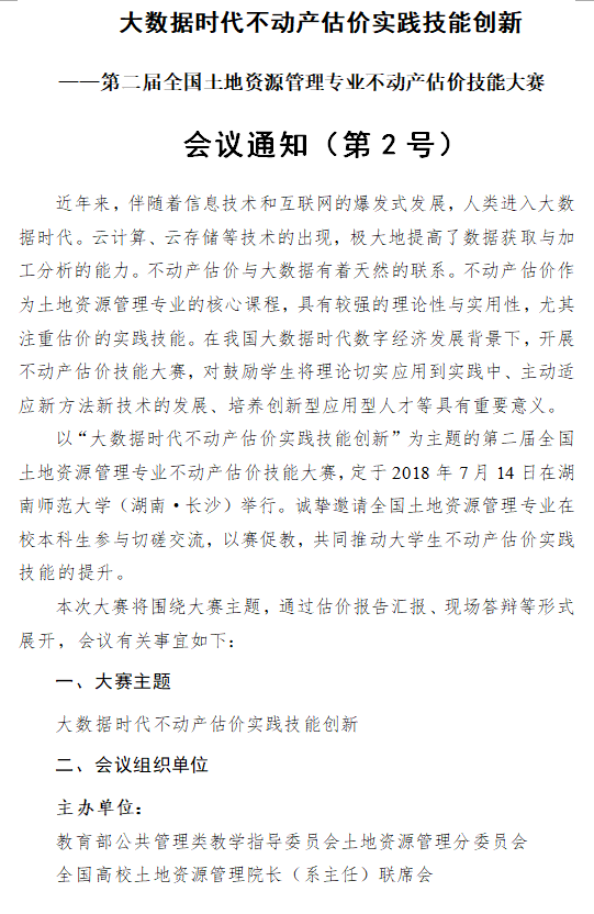附件2 第二届全国土地资源管理专业老员工不动产估价技能大赛通知.pdf点击下载