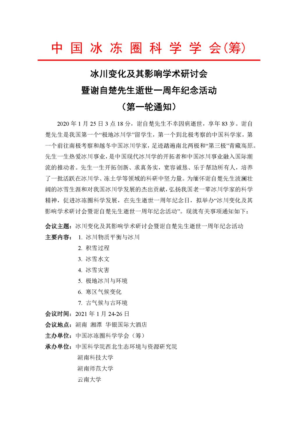 冰川变化及其影响学术研讨会暨谢自楚先生逝世一周年纪念活动一号通知.pdf