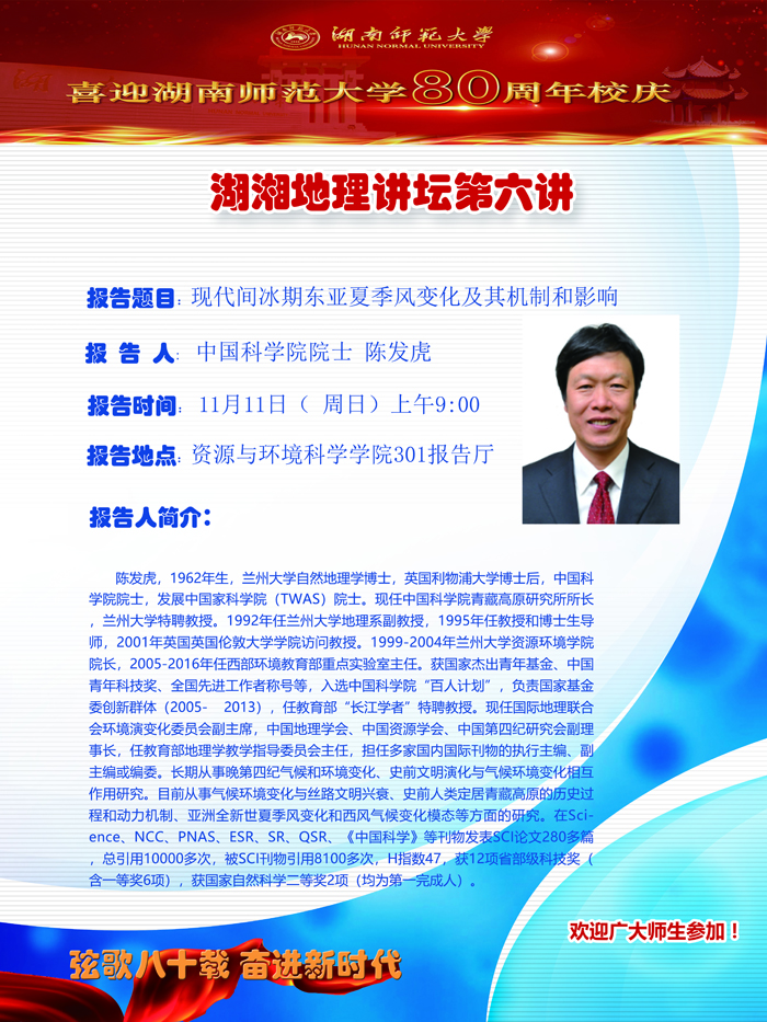 湖湘地理讲坛第六讲-现代间冰期东亚夏季风变化及其机制和影响-陈发虎院士