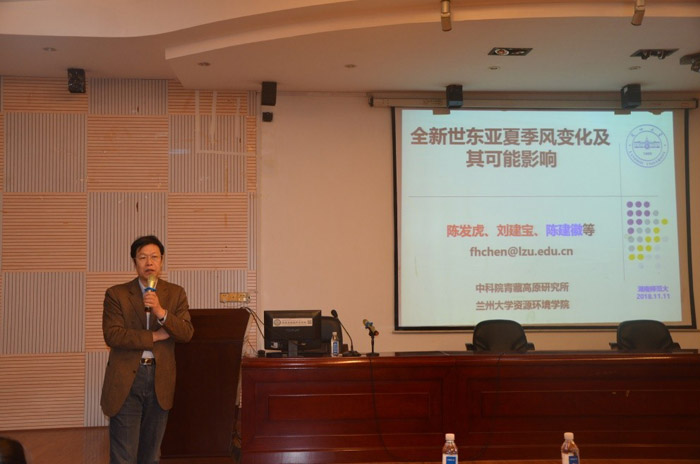 11月11日上午,中国科学院院士、发展中国家科学院(TWAS)院士、中国科学院青藏高研究所所长、国际地理联合会环境变化委员会副主席陈发虎研究员来公司讲学。公司党委书记李民教授会见了陈发虎院士,他对陈院士来校讲学表示热烈欢迎,对他长期以来对公司特别是公司地理学科发展建设给予的指导和支持表示感谢,并向陈院士介绍了学校发展建设的基本情况。随后陈院士做客湖湘地理讲坛,在资环学院301报告厅作题为《现代间冰期东亚夏季风变化及其机制和影响》的学术讲座。论坛由资源与环境科学学院经理谢炳庚教授主持,学院相关负责人及师生代表150多人参加。