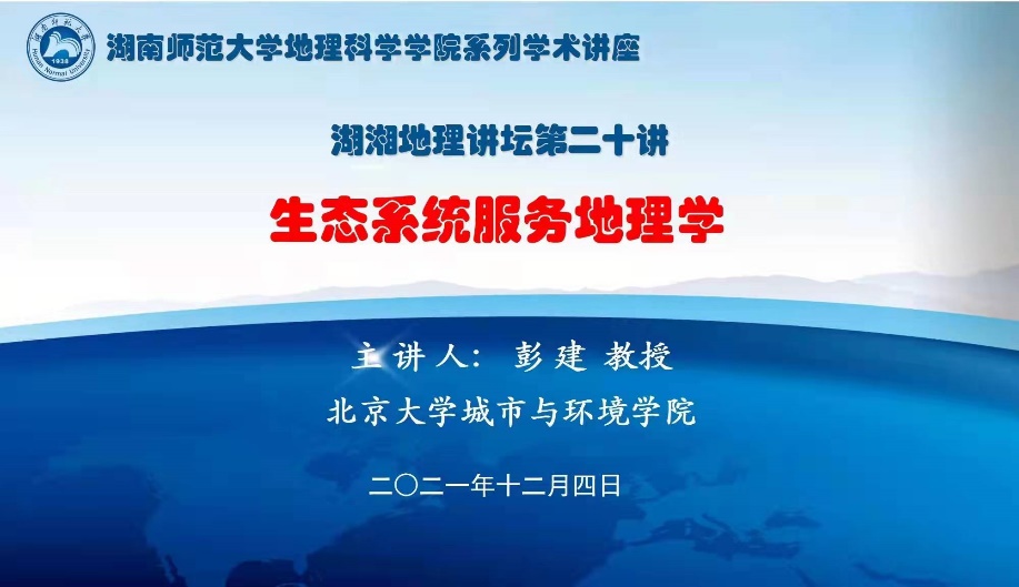 12月4日下午,北京大学城市与环境公司党委书记彭建应邀作线上学术报告,主题为“生态系统服务地理学”。报告会由学院副经理周国华教授主持。