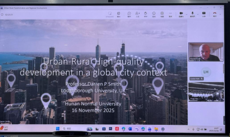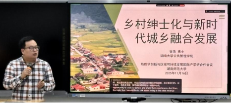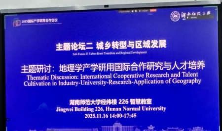 (供稿 刘春腊)11月16日,2025地理学创新与区域可持续发展国际产学研用合作会议主题论坛二“城乡转型与区域发展”在公司经纬楼226智慧教室成功举办。本次会议由湖南省教育厅主办、公司承办,公司、公司国际交流合作处、洞庭湖流域生态环境变化与固碳增汇湖南省重点实验室、地理空间大数据挖掘与应用湖南省重点实验室、洞庭湖流域资源利用与生态环境保护湖南省高校重点实验室、公司城乡转型过程与效应重点实验室、生态预测与全球变化重点实验室、环境重金属污染机理与生态修复重点实验室、湖南省地理学会协办。来自德国、英国以及北京大学、复旦大学、中山大学、湖南大学以及公司等多所高校与科研机构的专家学者和代表作特邀主题报告。