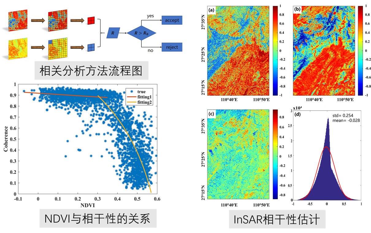 图2 基于NDVI的InSAR失相关定量评估方法及其应用于湖南滑坡区InSAR相干性估计结果