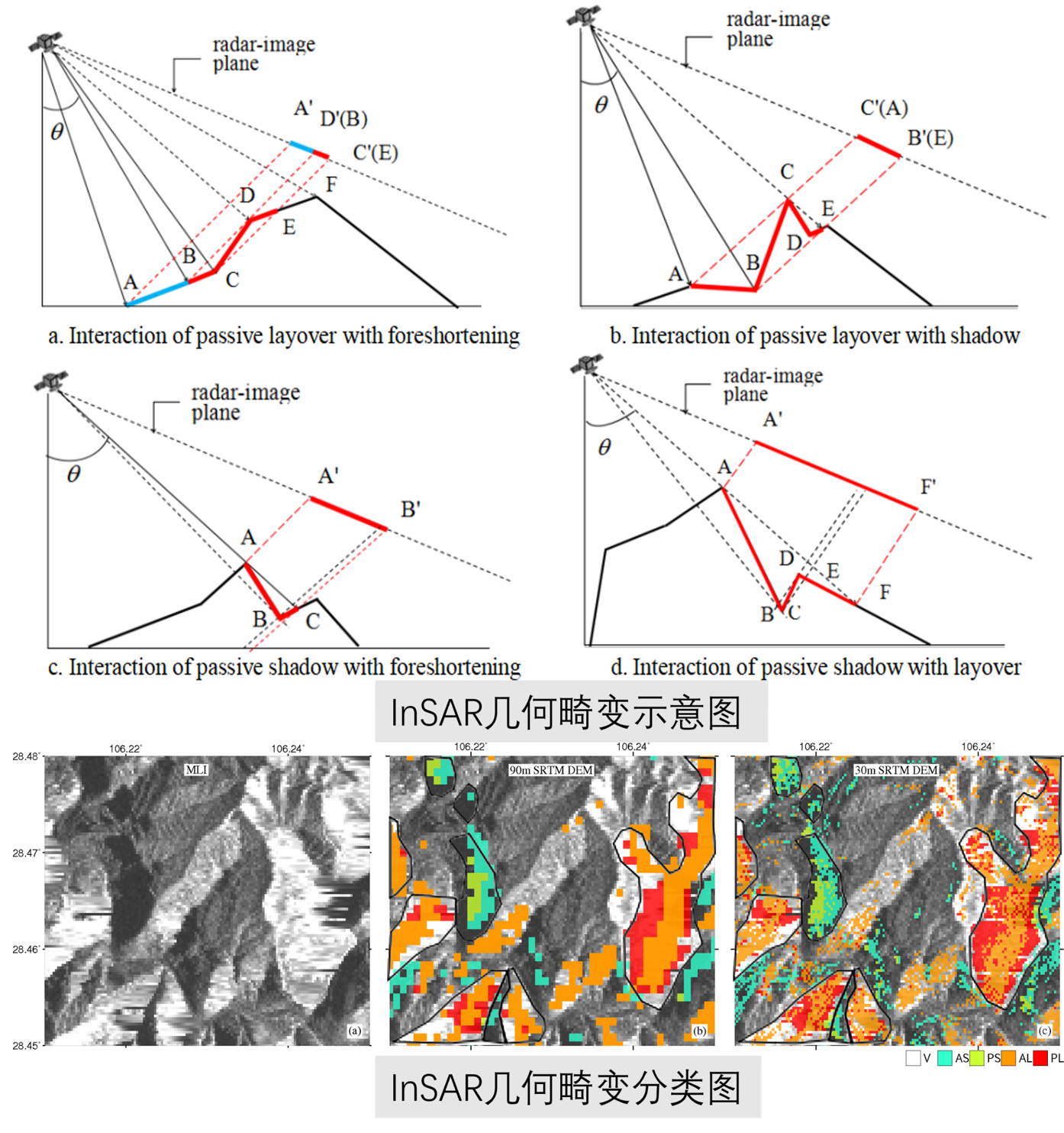提出了一种基于邻近点梯度关系的SAR几何畸变定量模拟的方法(P-NG方法),顾及几何畸变在空间上的重叠关系,根据几何畸变被动区域与几何畸变主动区域之间的邻近点梯度关系,获取范围完整且精度高的几何畸变模拟方法。