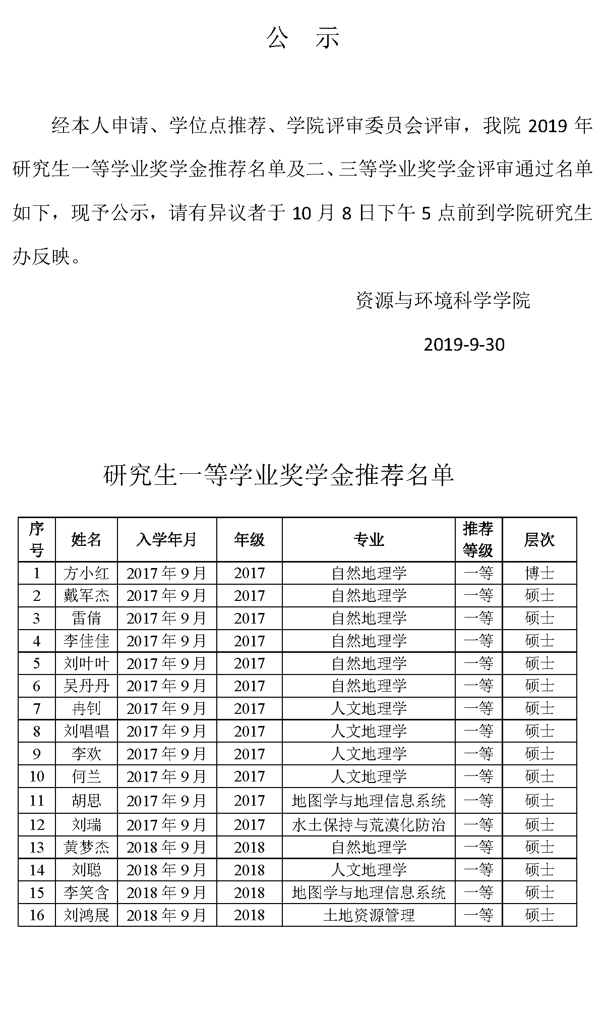 上一条:资源与环境科学学院2020年博士研究生“申请-考核”制实施办法