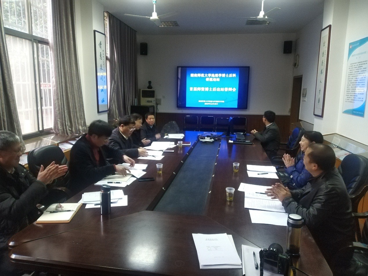 2019年12月23日上午,学院在201会议室举行团队博士后出站考核答辩会。答辩会由专家组长、中国科学院亚热带农业生态研究所党委书记王克林研究员主持。周楷淳博士以长沙市盲道空间格局及其有效性等为中心,介绍了近两年所开展的研究工作和取得的成果,回答了专家们提出的问题。专家组认为,周楷淳博士在站期间,选择新颖的研究领域,开展了深入扎实的研究工作,取得了较高水平的学术成果,为后续研究打下了良好基础,一致同意通过出站考核,评定为优秀等级。专家组成员彭渤教授、李忠武教授、李德平教授及合作导师谢炳庚教授和学校人事处邓正付副处长、博士后流动站管理办公室欧月娥主任等参加考核答辩会。
