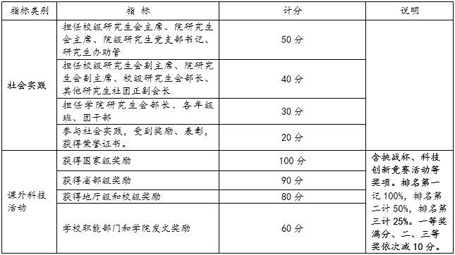 注:参评学年内同一人任多项社会工作,以最高级别工作计分,不累计。社会实践及课外科技活动等各类表彰最终得分为所有活动的累计得分,超过100分的以100分记。