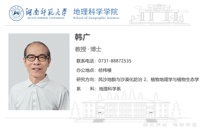 1. Han Guang, Zhang Guifang, You Li, et al. Deflated rims along the Xiangshui River on the Xiliaohe Plain, Northeast China: A case of active fluvial–aeolian interactions[J]. Geomorphology, 2016, 254: 47-56.
