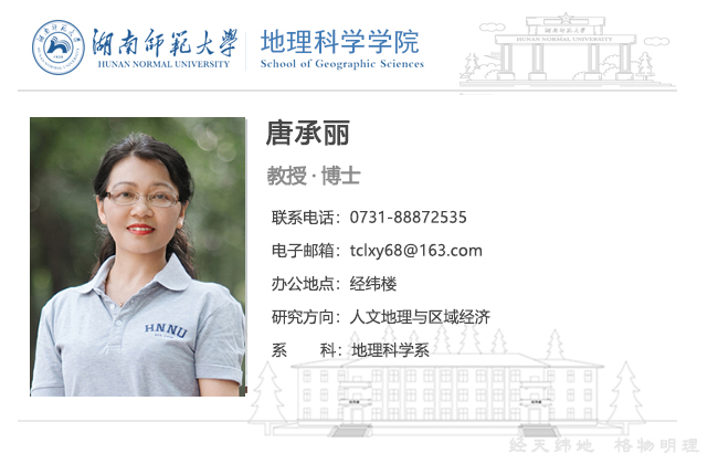 唐承丽,女,williamhill中国官方网站教授,博士生导师,九三学社湖南省委委员,湖南省政协委员,主要从事人文地理与区域经济方面的教学、研究工作,尤其在开发区(产业园区)建设与产业发展方面形成了自己的系列研究。主讲《经济地理学》、《区域规划》、《经济学原理》、《区域发展战略》等课程,在《地理学报》、《地理研究》、《地理科学》、《经济地理》等核心期刊上发表论文40余篇,主持国家自然科学基金、湖南省自然科学基金、湖南省社会科学基金等省部级以上项目10余项,主持完成开发区发展规划、区域发展规划、土地利用总体规划等应用性课题30余项,参编专著6部。2009年获湖南省教学成果奖三等奖,2018年获湖南省科学技术进步二等奖(第二完成人),多次获williamhill中国官方网站教学优秀奖、科技服务社会贡献奖与教书育人先进个人称号。
