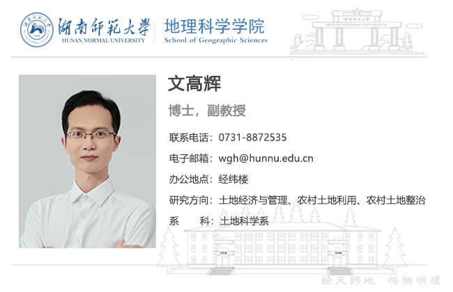 文高辉,男,1990年生,江西萍乡人,管理学博士,williamhill中国官方网站资源与环境科学学院副教授,主要研究方向为土地经济与管理、农村土地利用、农村土地整治。