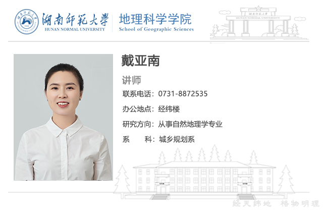 戴亚南,女,讲师,2000年本科毕业于湖南科技大学(原湘潭师范学院)地理系,毕业后就读于西南大学(原西南师范大学)资源与环境学院,从事自然地理学专业,辗转于重庆、贵阳和广西之间的野外调研工作。2003年毕业后来williamhill中国官方网站工作。主要讲授《自然地理学》、《区域防灾与减灾》等课程。