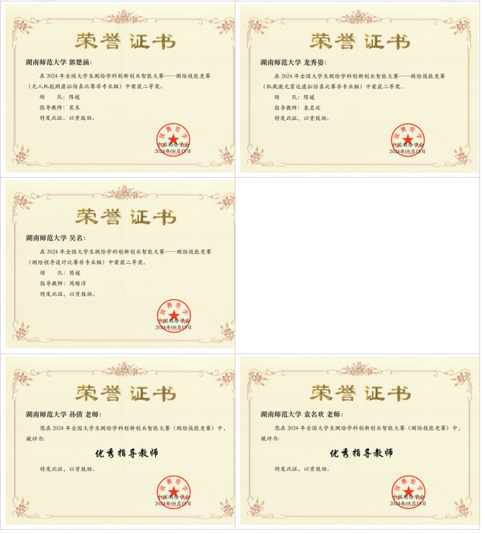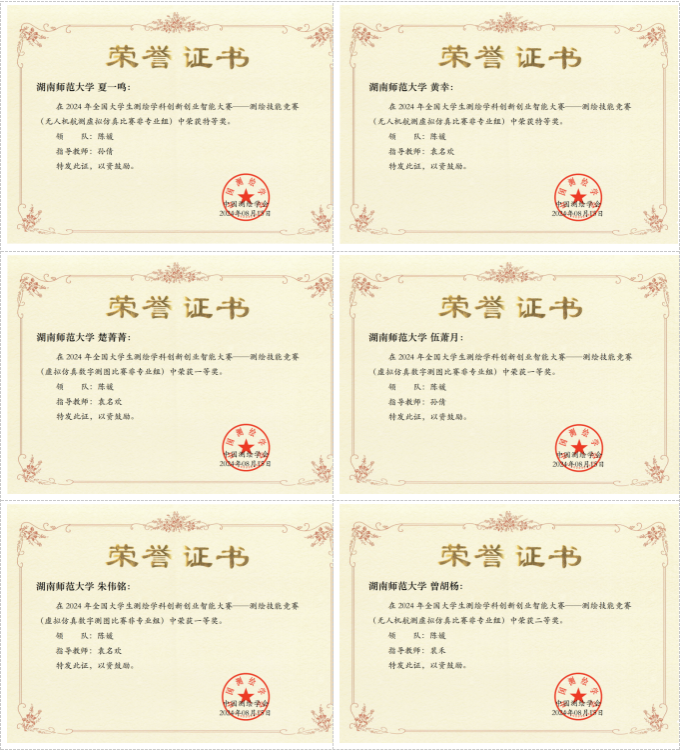 公司学子代表williamhill中国官方网站参加了非专业组的虚拟仿真数字测图、无人机航测虚拟仿真、机载激光雷达虚拟仿真比赛以及测绘程序设计等项目。公司学子在孙倩、袁名欢、周楷淳、裴禾四位老师的指导下,在多个赛项中取得了斐然成绩,成功获得两个特等奖(夏一鸣,黄幸)、三个一等奖(伍萧月,朱伟铭,楚菁菁)和四个二等奖(曾胡杨,郭楚涵,龙秀姿,吴名),孙倩、袁名欢两位老师获评“优秀指导教师”,为学校和学院争得了荣誉。