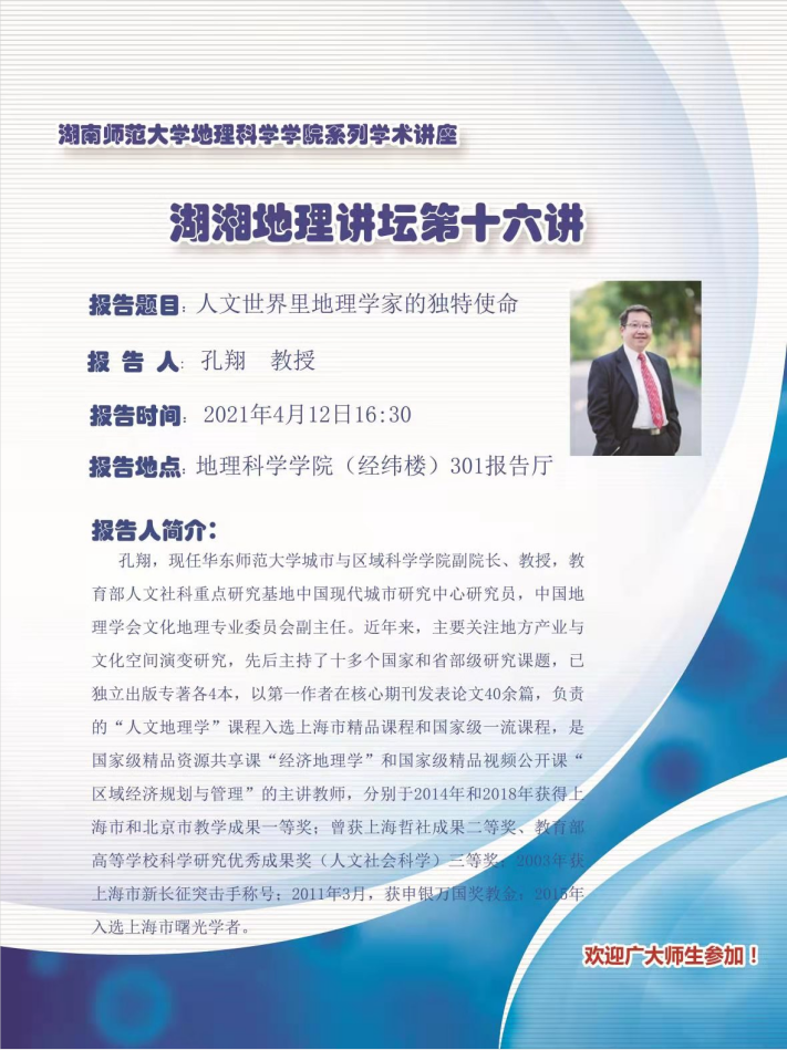 湖湘地理讲坛第十六讲-孔翔教授 |
