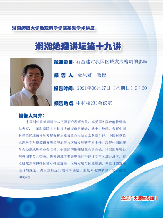 湖湘地理讲坛第十九讲-金凤君教授 |