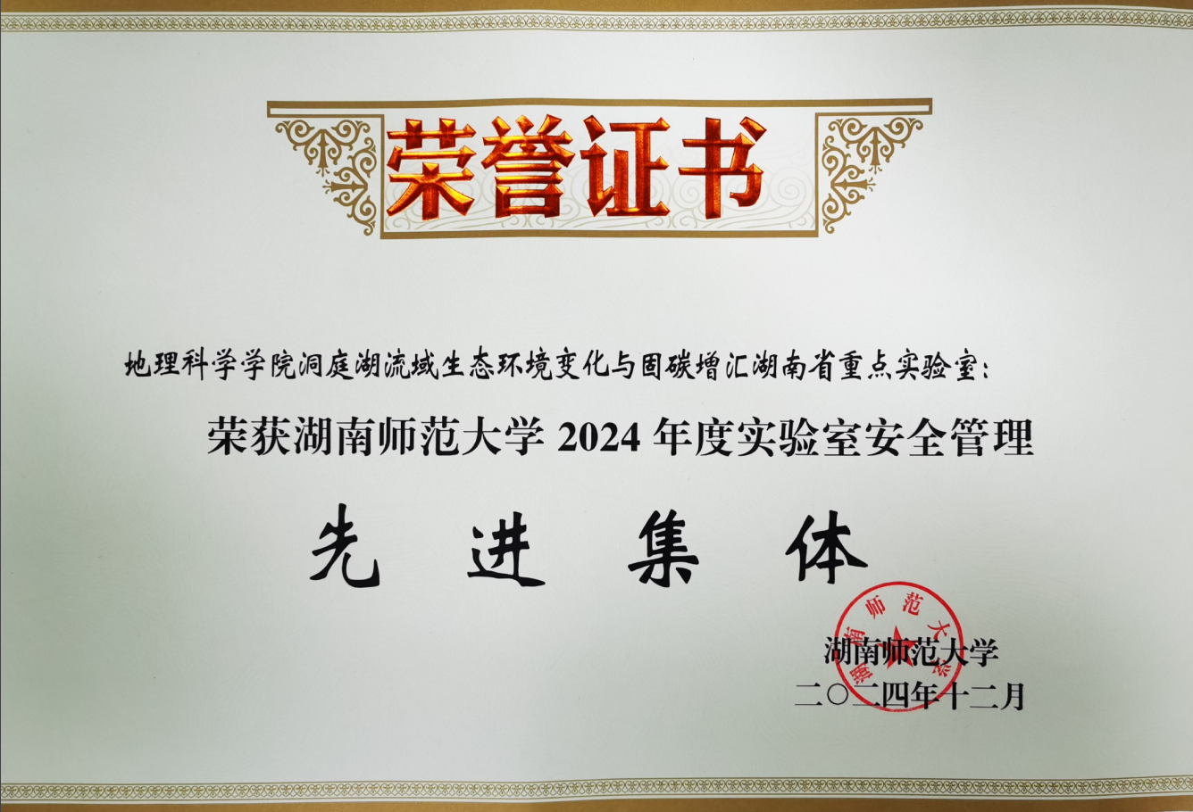 公司洞庭湖流域生态环境变化与固碳增汇湖南省重点实验室荣获williamhill中国官方网站2024年实验室安全管理先进集体 |